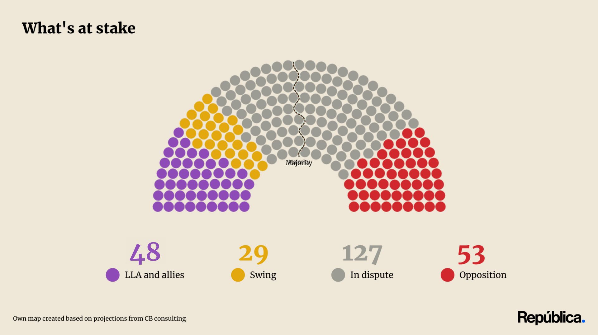 Out of the 127 seats at stake, 49 belong to opposition parties, while LLA only defends 34 total, allowing it more room to gain than to lose.