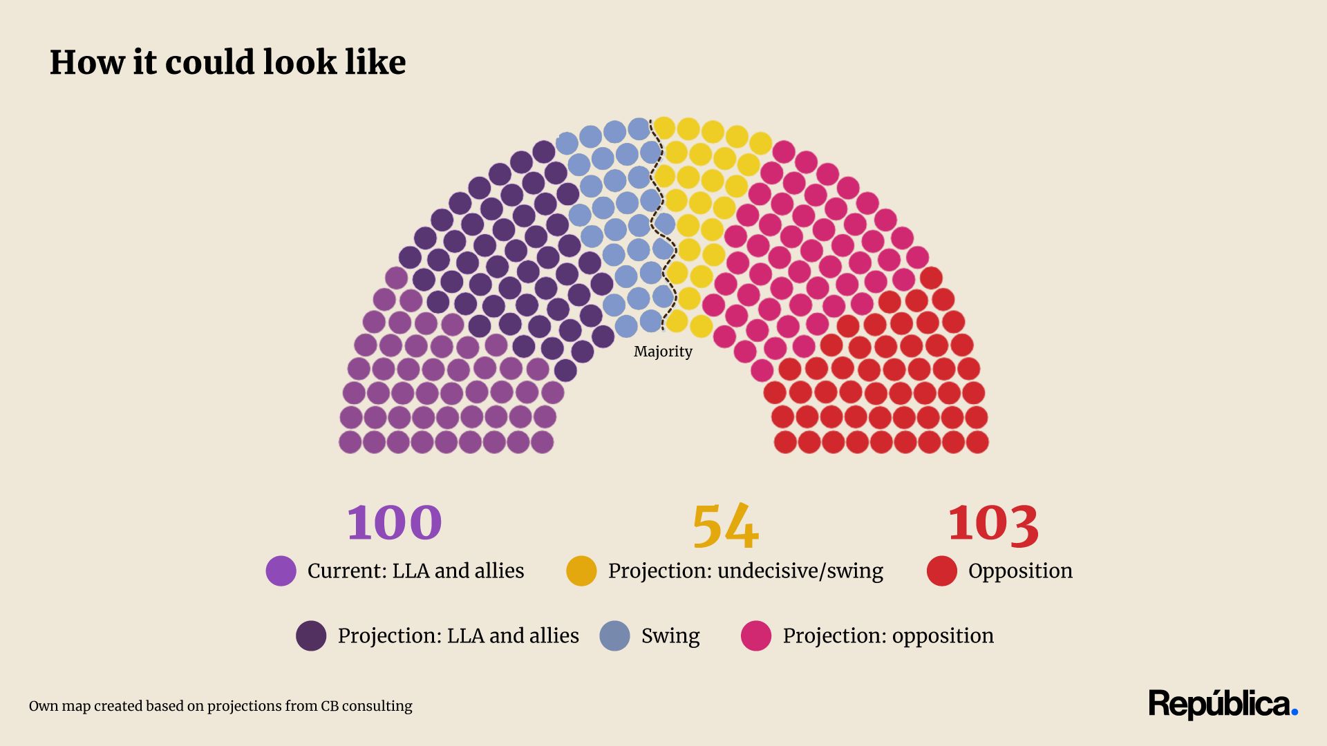 If national polling translates proportionally to Congress seats, estimates would place LLA and its allies at around 100 seats, a notable rise from their current 82.